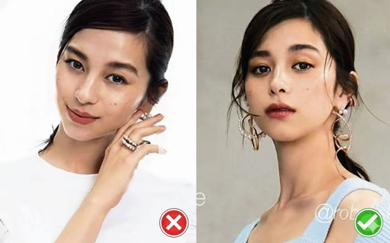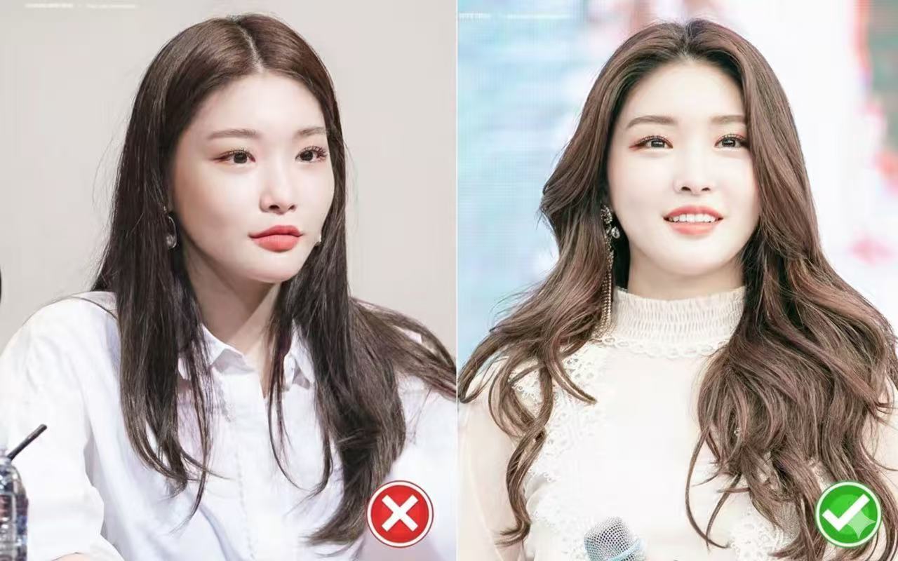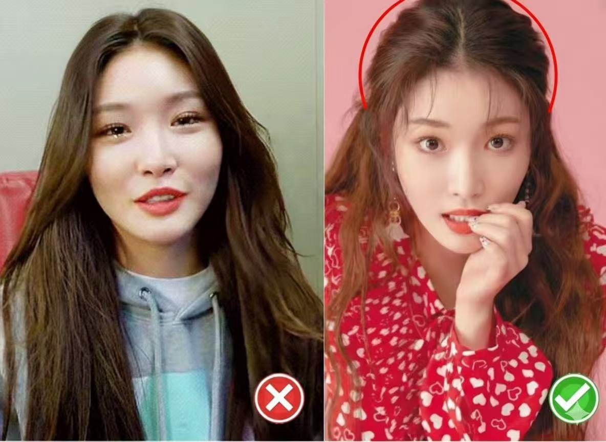 ① Asymmetric Cover (S-Curve): Cover one side, expose the other (tuck behind ear). The covering side should have an "S" curve. Asymmetry distracts attention. Don't cover both sides—it looks unnatural.