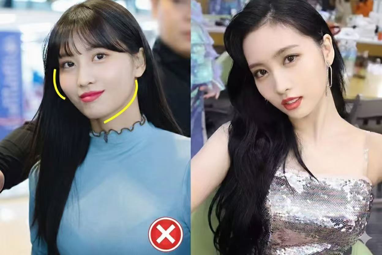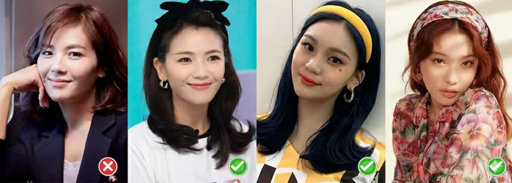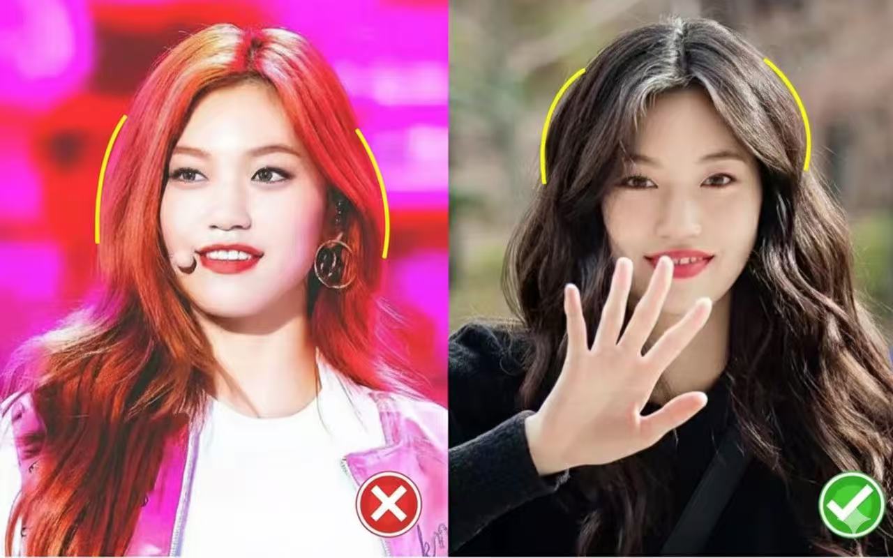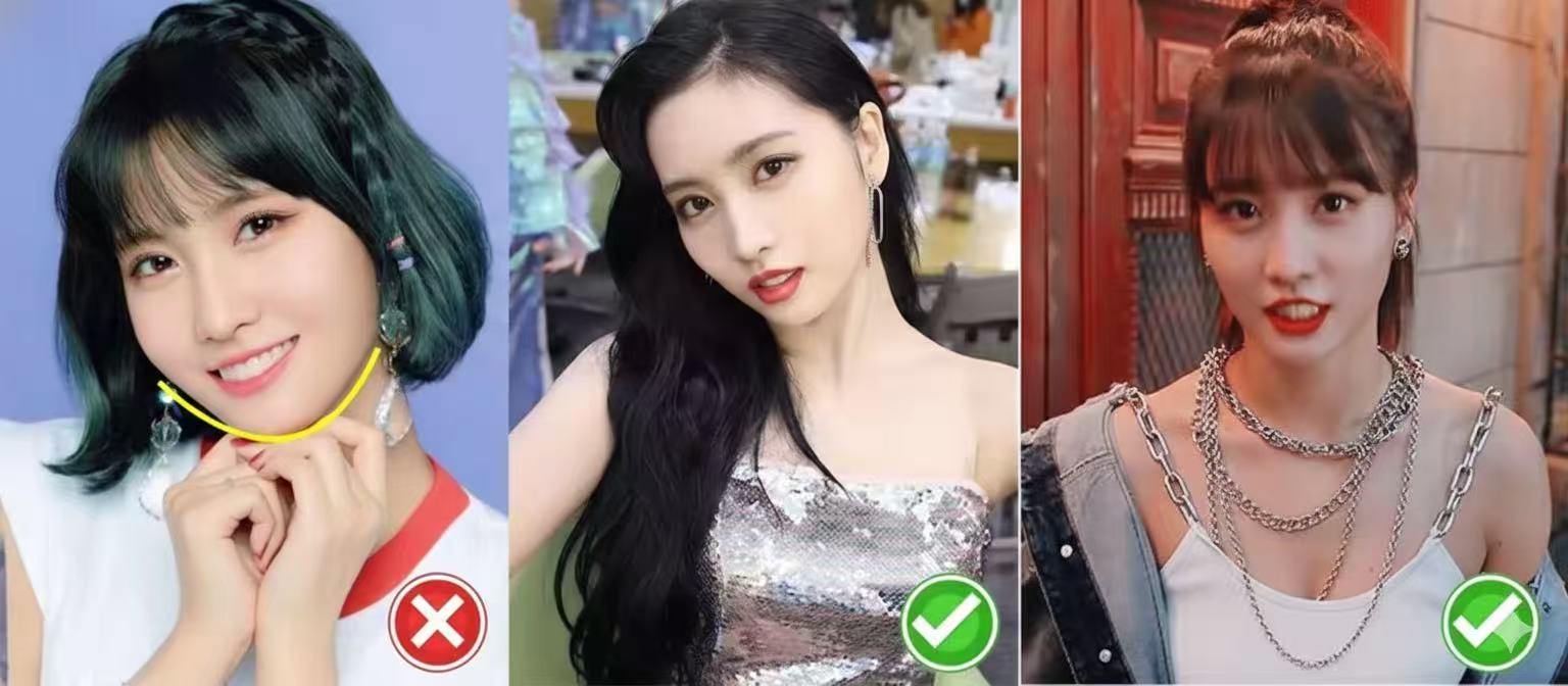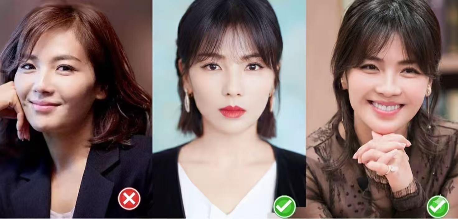 ① Small face with good proportions? Both work. ② Heavy jaw or blunt chin? Avoid neck-length bobs. Go for long hair or tie it up high.
